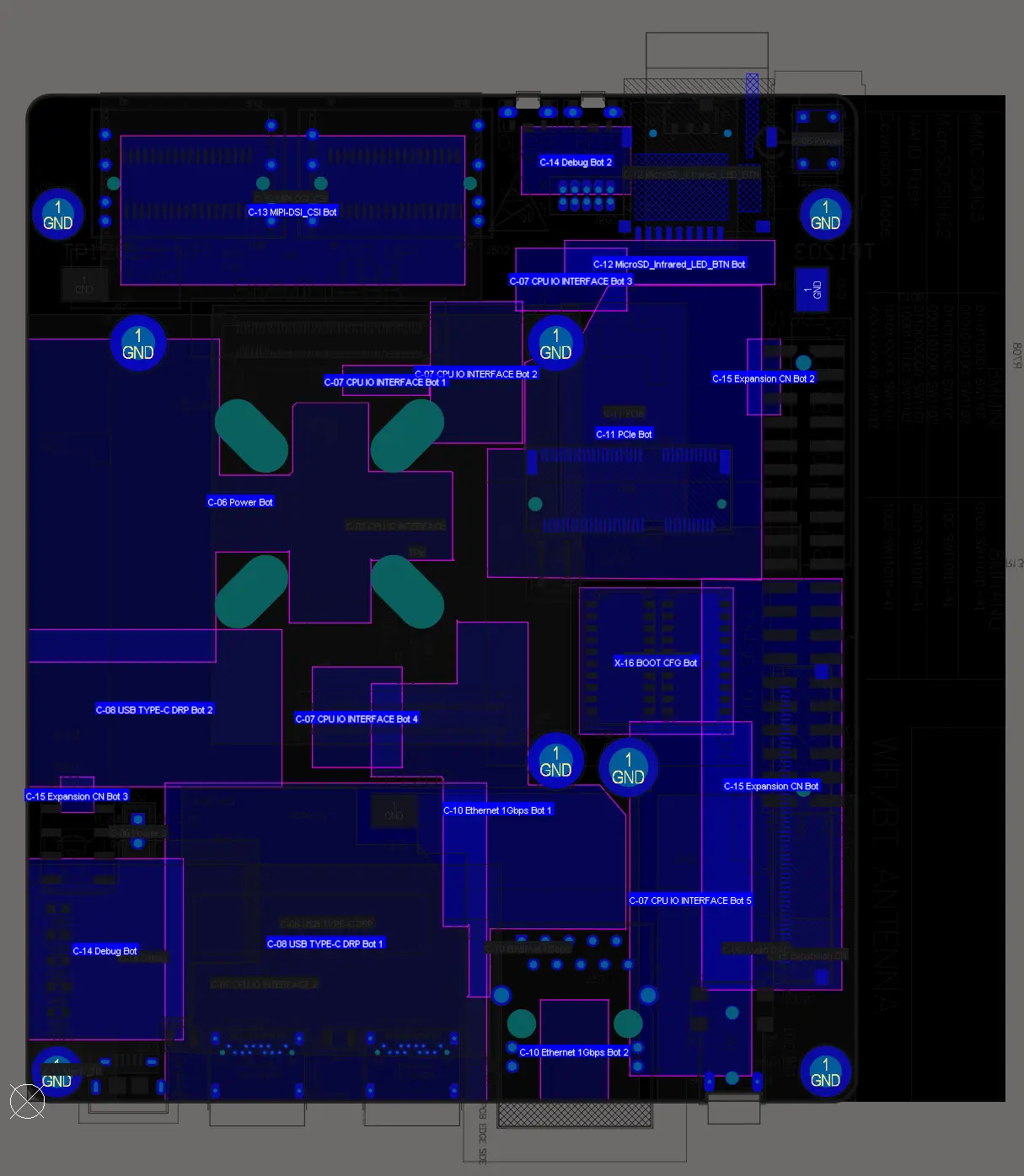 NXP publishes full schematics and CAD files for this platform, originally designed in Cadence Allegro. Our goal was to keep the schematic identical and prove out only the layout portion with Quilter. That gave us a clear baseline: if the board didn't work, it would be due to our layout.
